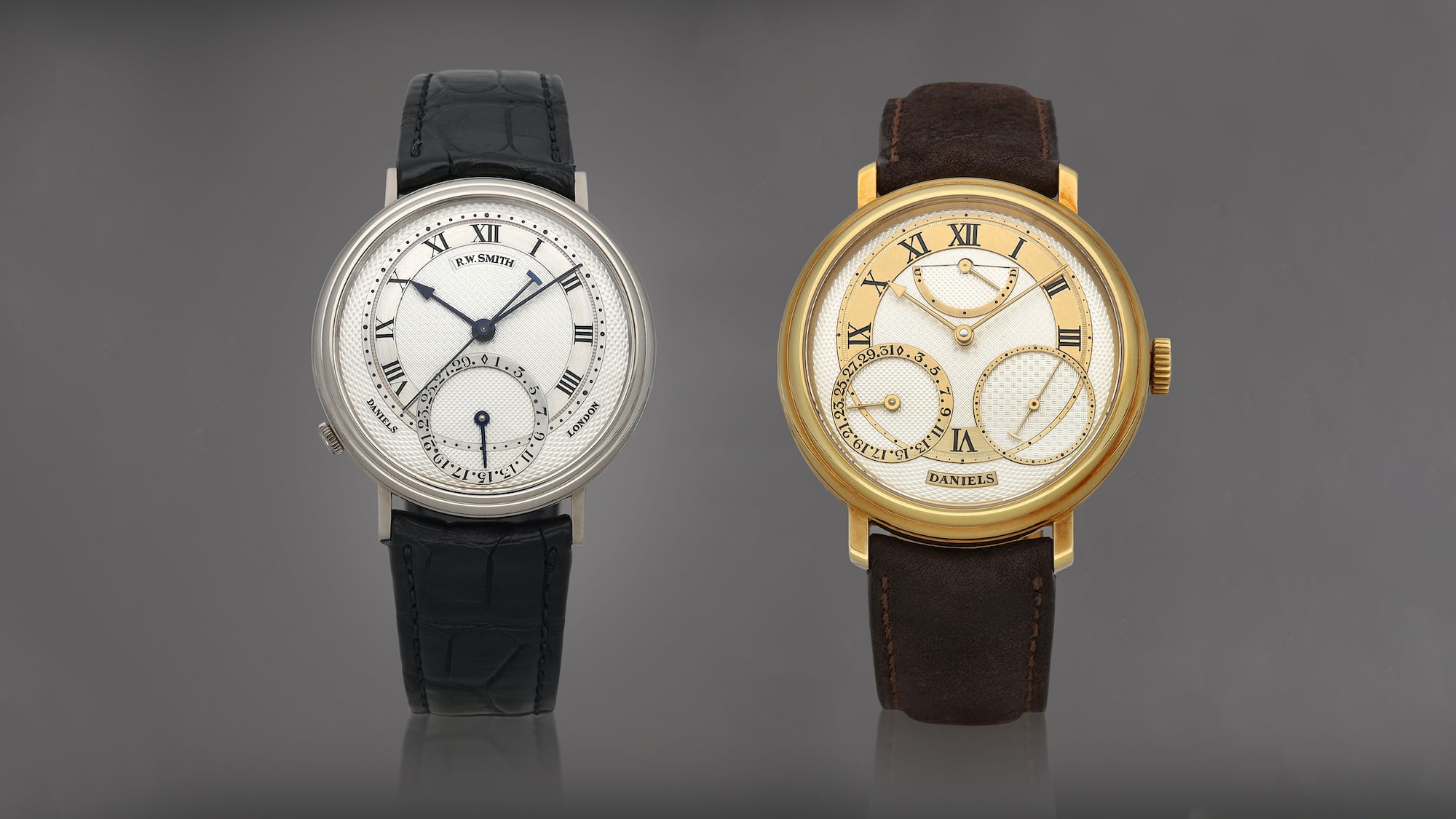 It’s the last of Daniels’ Millennium series – double signed – and the very first in the Co-Axial Anniversary series by Smith for Daniels, representing the best of British watchmaking.