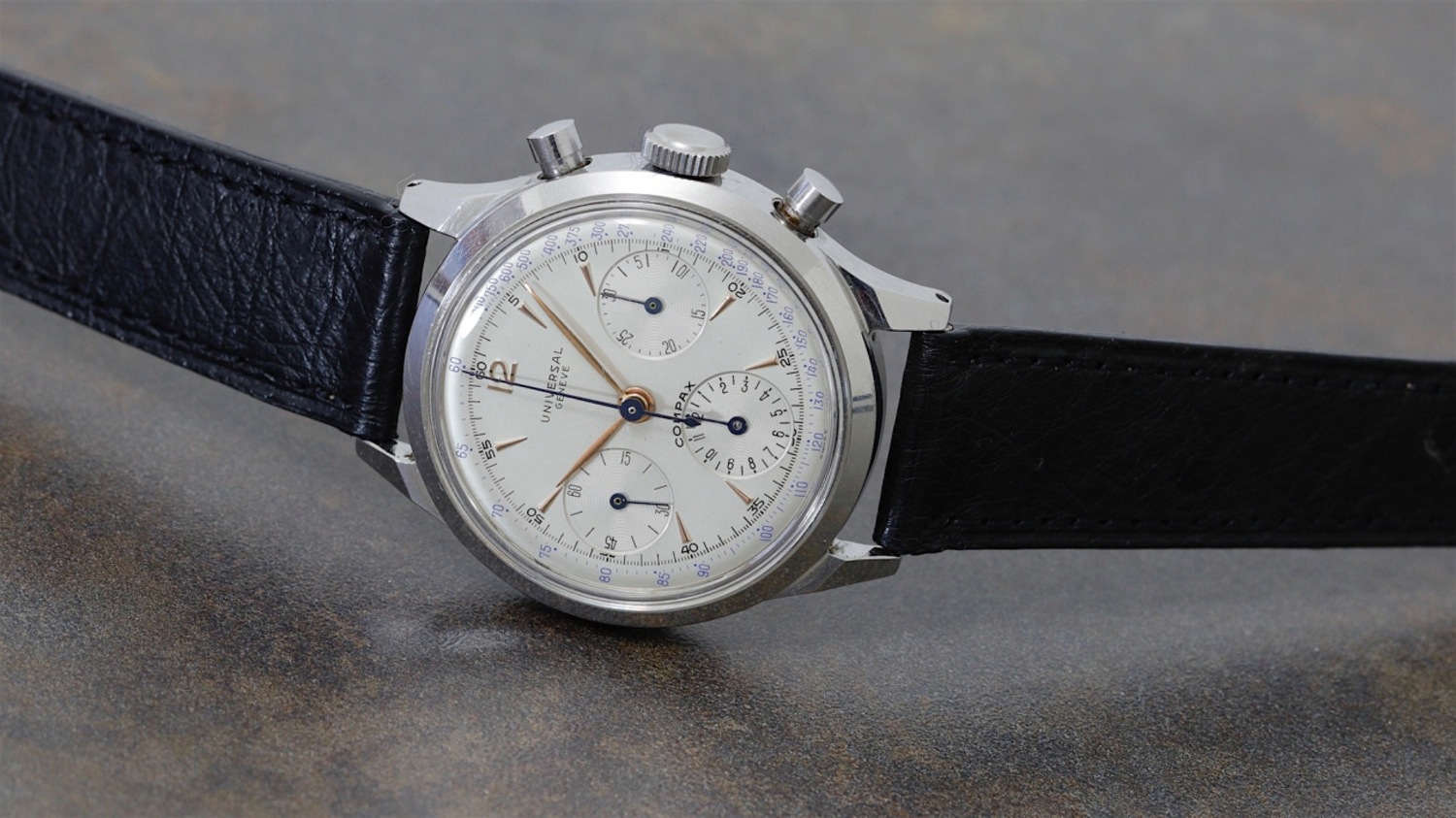 This week we have two amazing Universal Genève Compax watches featured, both the reference 22410, which we love for its large waterproof case. And when it comes with a futuristic looking dial, it gets even better, which explains why one example was sold in a flash for just over $50,000. We also have a gorgeous Rolex Sea-Dweller reference 1665 and a patinated Heuer Autavia reference 2446 with big sub-registers and dauphine hands. This is your Bring A Loupe for February 17, 2017.
