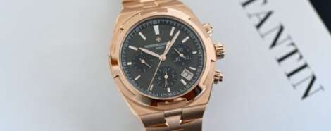A salmon dial, platinum case, and bi-retrograde complication of the Patrimony Retrograde Day-Date is Vacheron Constantin’s subtle take on the recent phenomenon.