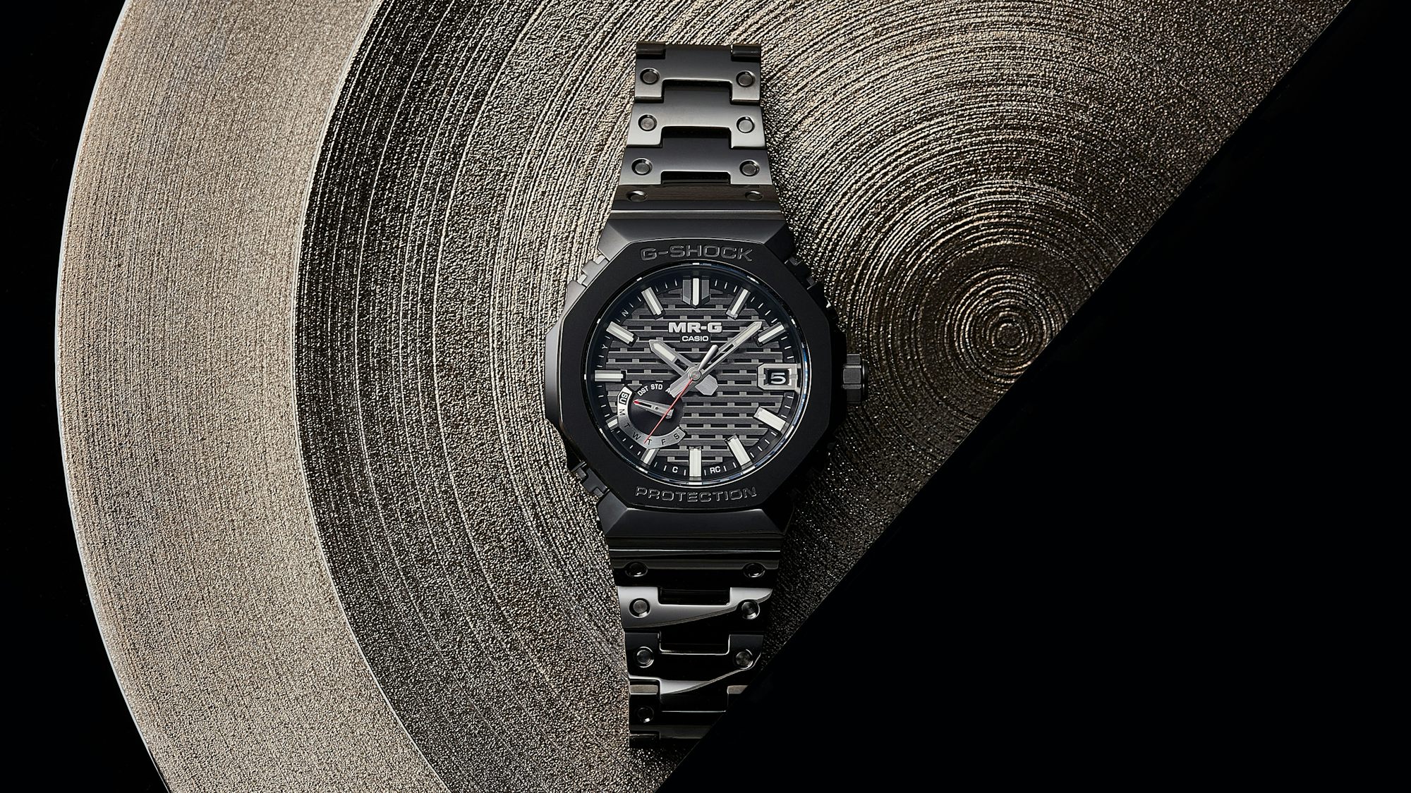 The G-SHOCK MRG-B2100B blends iconic G-SHOCK heritage with a new direction in design. Featuring a minimalist three-hand design and a meticulously crafted dial with a three-dimensional metallic texture inspired by traditional Japanese Kigumi woodworking, this watch combines elegance and functionality.