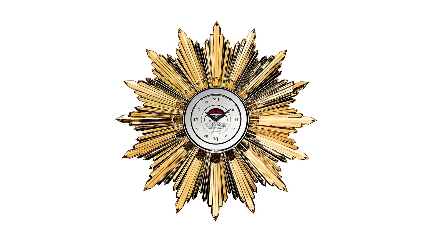 Here to spice things up ahead of Baselworld is the Baccarat and L’Epée Sun Clock, a new wall clock based on a vintage design. The first sun clock was designed by Georges Chevalier in 1948 for Baccarat and was re-introduced in 2014 for the 250th anniversary. Famously, one resided in the home of Arthur Miller and Marilyn Monroe in the late 1950s. This year the sun clock is back with 20k gold beams and it’s powered by the L’Epée 1839 movement.