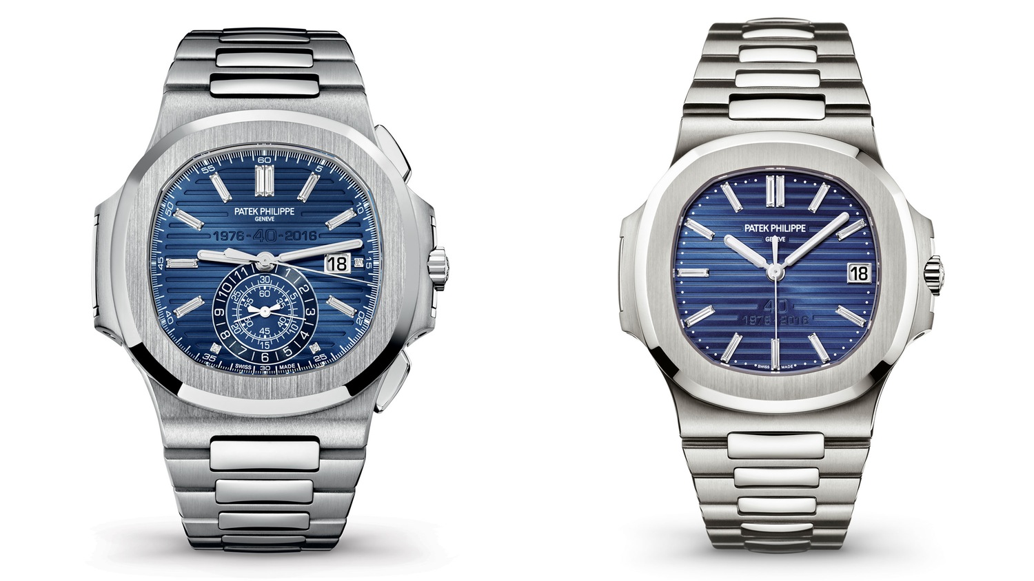 We knew something was coming, but didn’t know what. This year marks the 40th anniversary of the famed Patek Philippe Nautilus, a favorite amongst collectors new and old. At Baselworld 2016, we were told by Patek directly that indeed there would be some special pieces coming this fall, and now we know what they are – an oversized white gold Nautilus chronograph with diamond indexes and a platinum time-and-date Nautilus, both with a special stamping on the dial to commemorate the anniversary. What’s more, the cork box is back!