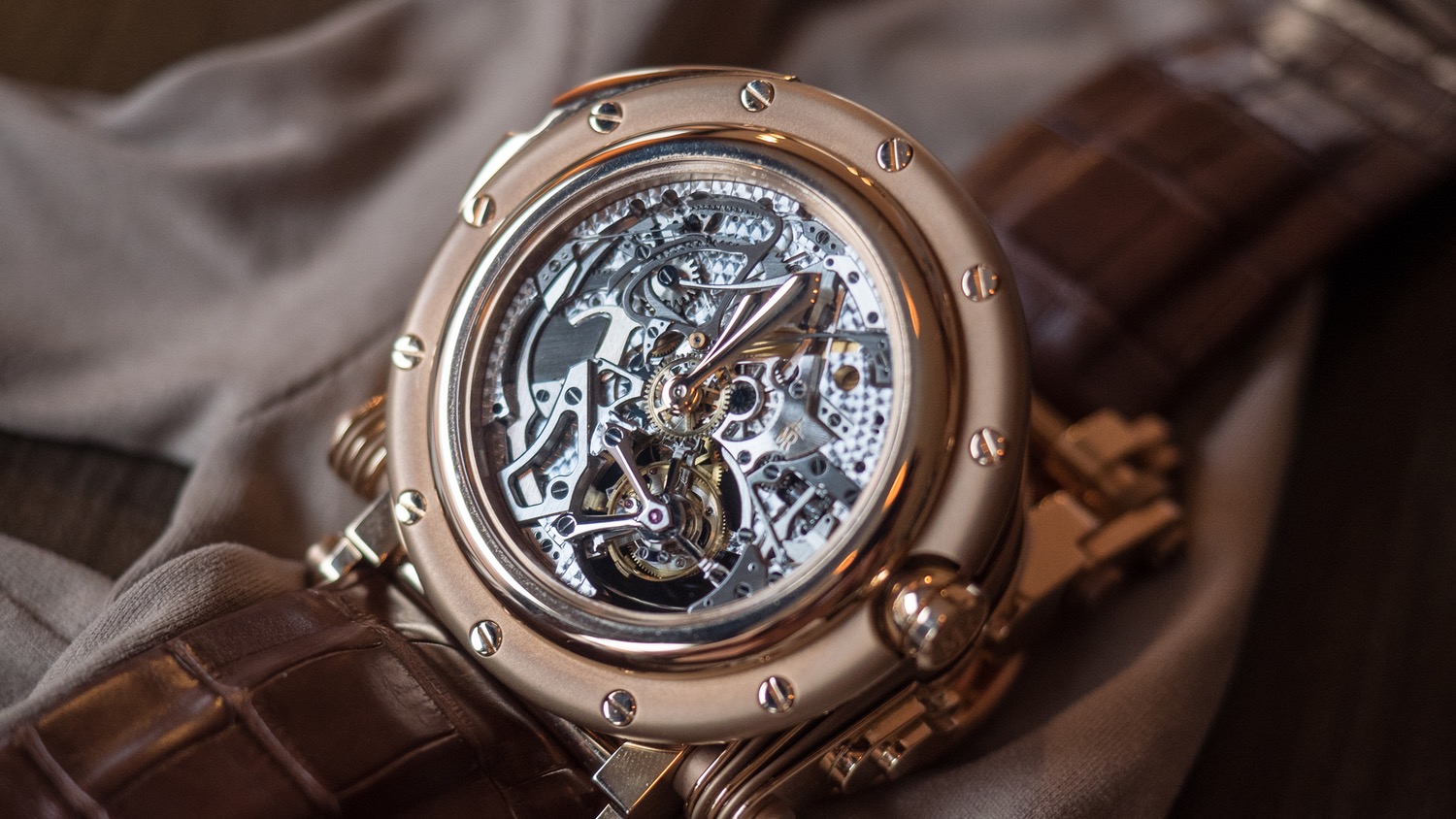 Manufacture Royale co-owner David Gouten stopped by our office recently, bringing with him a slew of the brand’s extremely unusual watches. The most out there of these was none other than the Opera, a minute repeater and tourbillon with – well, you want to call it an unusual case, but “unique” might be closer to the mark, as I can’t off the top of my head think of a single example of another tourbillon and minute repeater wristwatch with a telescoping case.