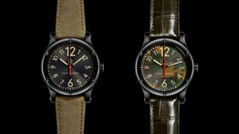 The RL67 Ralph Lauren Safari models were introduced in 2013 as a sports-elegant, and relatively affordable, line of watches that would dovetail stylistically with Lauren’s idealized view of the safari as a vehicle not for hunting, but rather for seeing new worlds and reconnecting with nature. Pre-aged steel cases with gunmetal finishes and the case design from the Automotive collection are signature elements for the Safari watches, as well as automotive style dials and, usually, canvas straps. Although smaller models were introduced in recent years (and well received, at 39mm) this year Ralph Lauren’s gone the other direction, with 50mm cases.